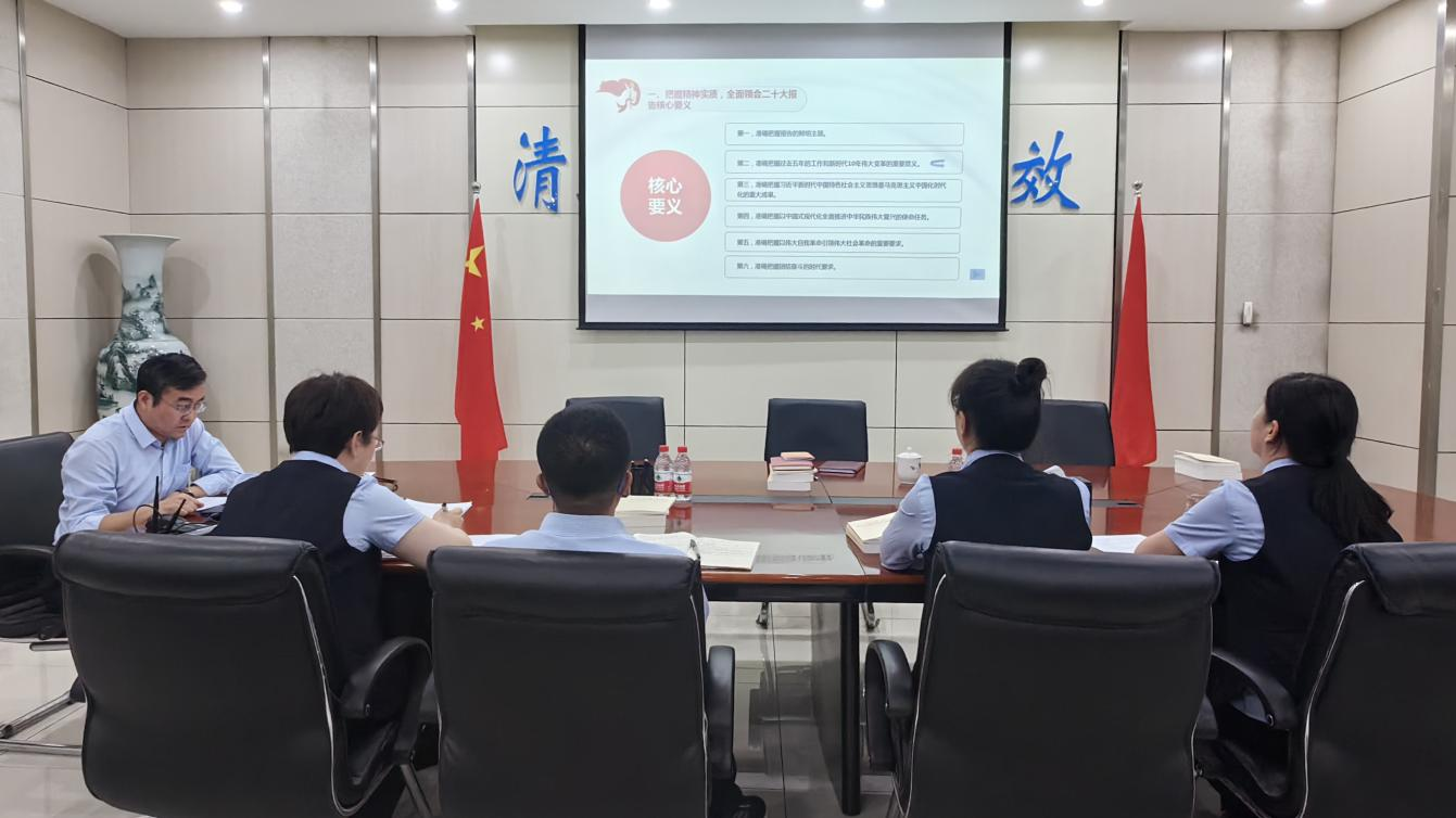 会上,全体干部职工集体学习了党的二十大报告第十五部分“坚定不移全面从严治党,深入推进新时代党的建设新的伟大工程”和《习近平著作选读》第一卷、《习近平新时代中国特色社会主义思想专题摘编》、《习近平新时代中国特色社会主义思想的世界观和方法论专题摘编》有关文章,传达学习了《自治区党委办公厅关于印发<自治区党委常委会学习贯彻习近平新时代中国特色社会主义思想主题教育工作安排>的通知》。